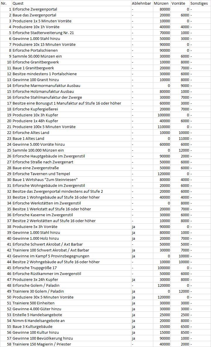 Die Zwergenstraßen (49 Kultur) kannst du auch erst zum Ende des Kapitels bauen, um die noch verbliebenen Rohstoffe nicht zu vergeuden.