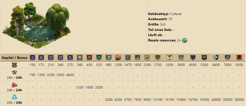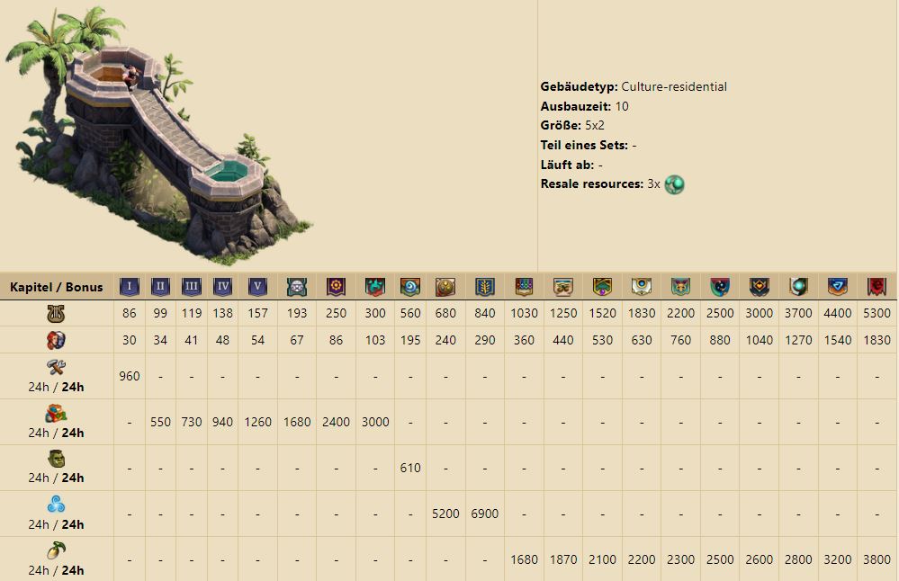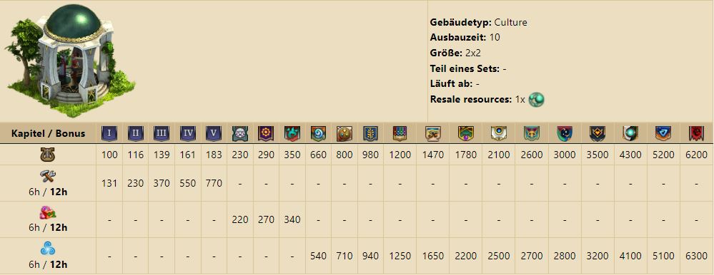 Das Gebäude produziert Bevölkerung und Kultur und ist je nach Stadium des Gebäudes umschaltbar zwischen: