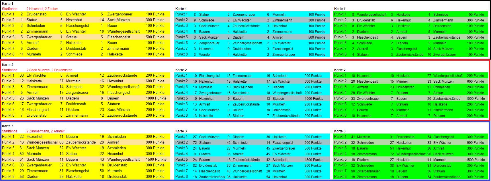 - Wir gehen auf jeder Karte nur 1 Weg