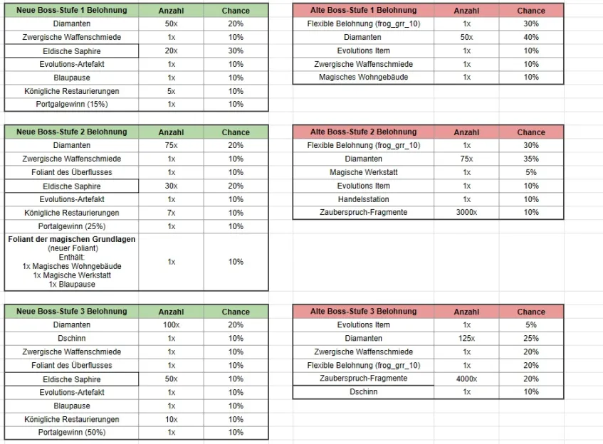 Mit diesen Änderungen haben wir versucht, ein Gleichgewicht zwischen Spannung und wertvollen Belohnungen herzustellen, um sicherzustellen, dass jeder Spieler im Turm der Ewigkeit erfolgreich sein kann. Es ist uns auch wichtig zu betonen, dass der Gesamtwert dieser Belohnungen nun höher ist als der, den ihr bisher kanntet, obwohl weniger Diamanten verfügbar sind. Mit