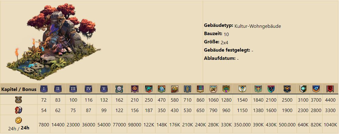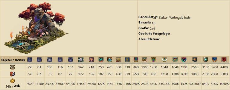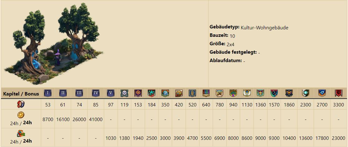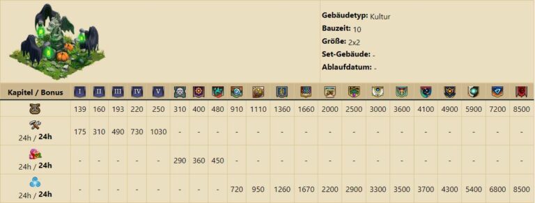 Eine neue Kombination aus Evolutions-Gebäude und Set-Aufbau, bei der das Hauptgebäude des Sets entwickelt werden kann. Elvenar hat dies getan, um etwas Neues auszuprobieren und um im Grunde eine noch stärkere Belohnung als ein einfaches Set zu bieten. Du kannst dir das als ein sich entwickelndes Gebäude vorstellen, das zusätzlich durch Setteile verstärkt wird. Das Hauptgebäude produziert Kultur, Bevölkerung und kann zwischen Orks, Erleuchtete-Güter, Einheiten und Wissenspunkten umgeschaltet werden.