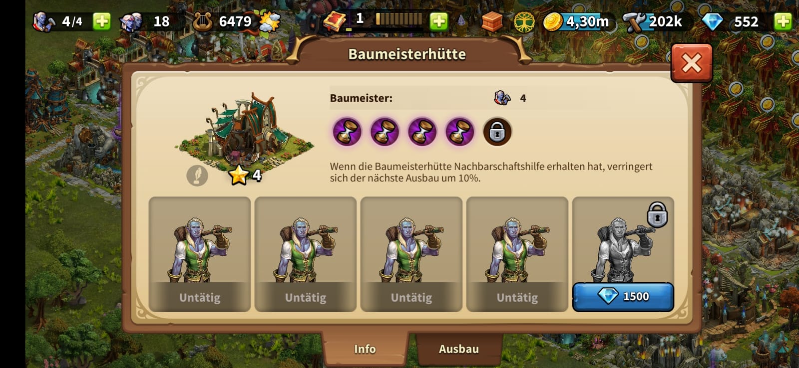 Am Anfang des Spiels hat man 2 Bauarbeiter zu Verfügung und man kommt die erste Zeit damit aus, um zu schauen, ob einem das Spiel